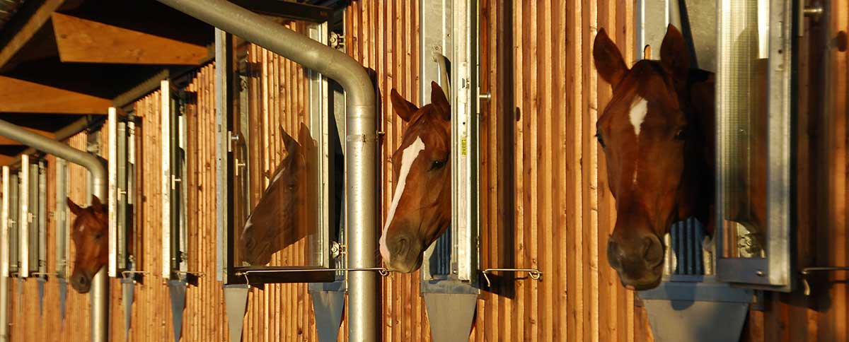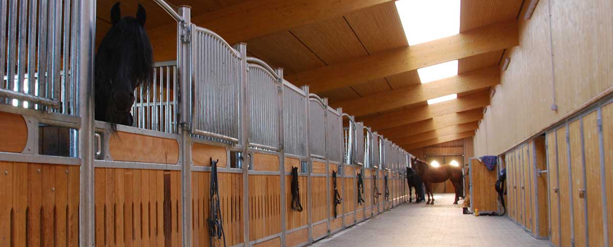 Unsere Boxen sind geräumig (ca. 3 x 4m) und mit Klappgittern versehen oder zur Stallgasse hin offen. Alle Plätze verfügen über beheizte Selbsttränken. Bei uns werden die Ställe täglich gemistet und frisch eingestreut. Standardeinstreu ist Stroh, wobei Spänestreu gegen Mehrpreis möglich ist. Die Decke des großen Stalltraktes ist mit einer Brettstapeldecke System „Römmelt“ zur Isolierung ausgestattet. Alle Stallanlagen sind gut gelüftet und bieten ein gutes Klima für die Pferde.
