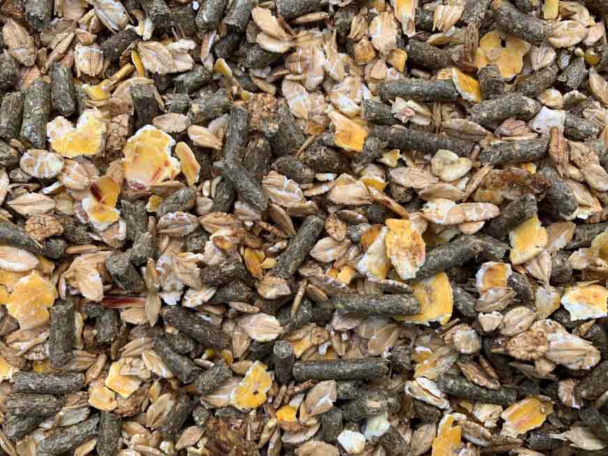 Pferdemüsli als Ergänzung zum Hafer oder gerade als Ersatz bei haferfreier Fütterung wird vom örtlichen Landhandel in hoher Qualität hergestellt.